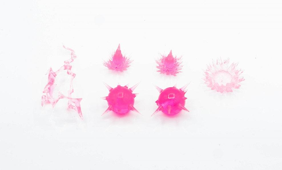 Pieces are made of a very durable, tough resin, and are hand finished, so every piece will be unique! This also means it may not be the exact coloration as the photo but generally we try to follow the same guidelines :)